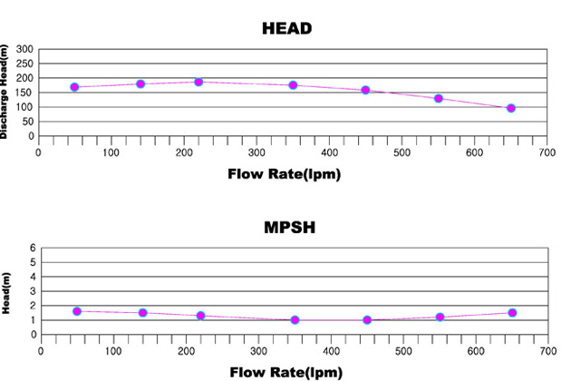 허용 유량은 10~35m3/h, 토출압력은 최대 3.2MPa까지 도달합니다.