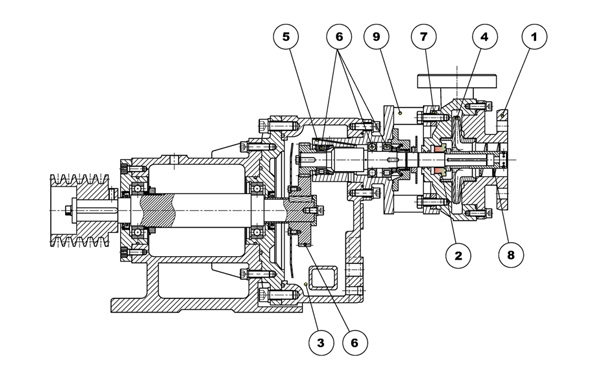 - ⑧낮은 NPSH를 허용하는 스크류 유도 장치