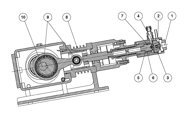 반영구적 Needle Bearing을 사용하며, 크랭크샤프트 열처리 경도는 HRC 60 이상으로 강도 및 내마모성이 탁월하여 Rod Piston 중심을 견고히 잡아주므로 Piston Packing Ring의 긴 수명을 보장합니다.